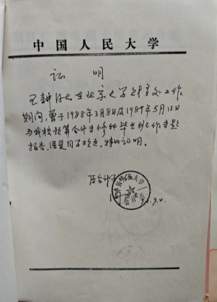 中国人民大学前身是陕北公学、华北联合大学和华北大学,但始终不变的是"为党育人、为国育才"的校风。我在中国人民大学老师们的培育下,从函授大专、本科,一直走到硕士;从北大小职员、会计师,浙大高级会计师,上海交大副教授、教授,一直走到财政部会计准则咨询专家。感恩!