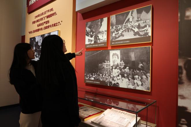 “天翻地覆慨而慷——渡江战役胜利暨南京解放展”以习近平新时代中国特色社会主义思想为指导,分为“运筹帷幄 坚决‘打过长江去’”“决战千里 百万雄师过大江”“军民团结 接管城市开新局”“革命到底 宜将剩勇追穷寇”“见证胜利 渡江精神世代传”5个部分。在各类大型沉浸式场景、百余件珍贵文物和历史影像中,同学们感受到了中国共产党高瞻远瞩、运筹帷幄的豪迈与气势,了解到了战士们英勇抗战、人民群众踊跃支援的感人史实,大家在漫长的历史长河中深刻感受到,中国共产党领导是历史的选择、人民的选择。