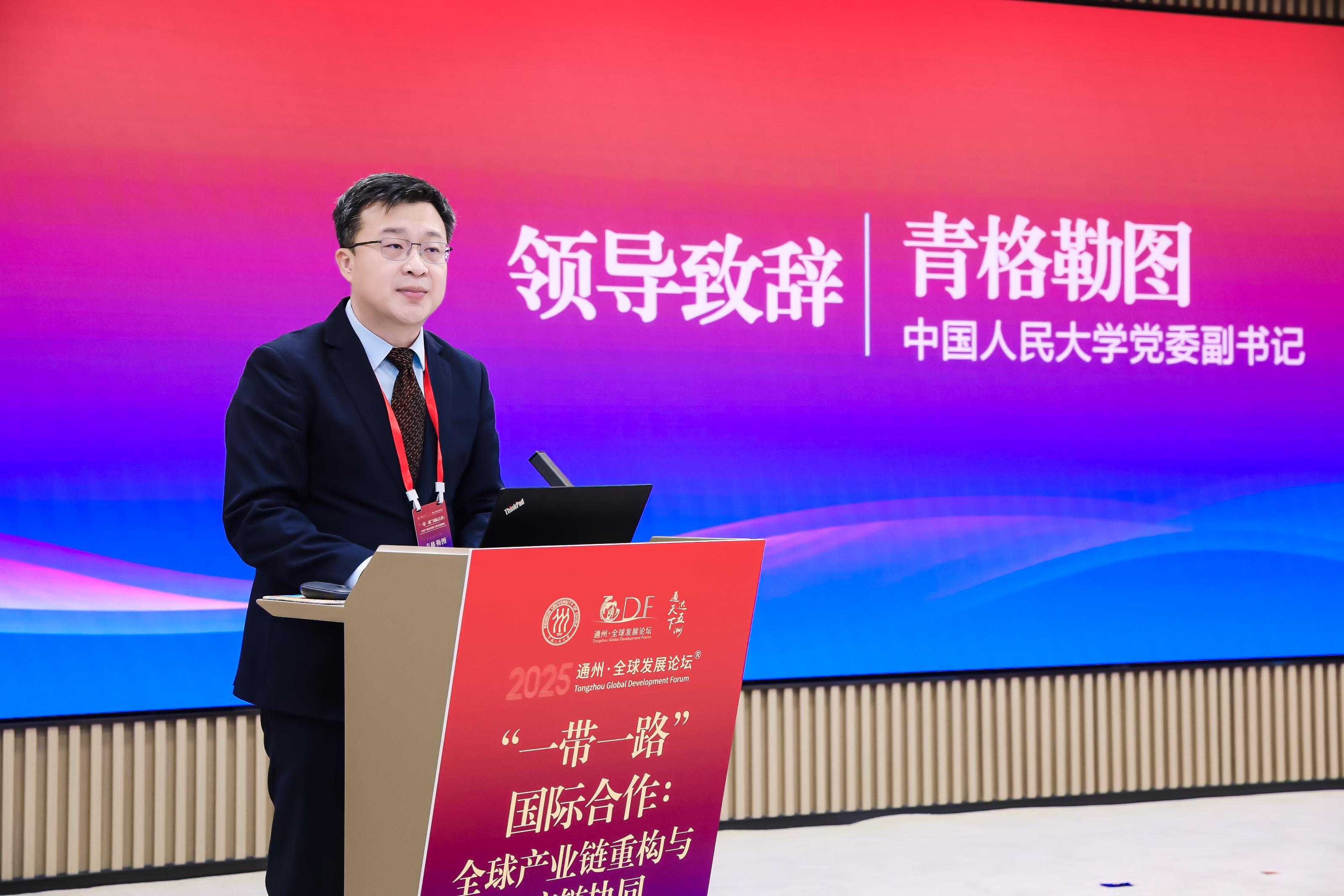 青格勒图表示,伴随着高质量共建“一带一路”走向深入,如何维护全球产业链供应链的稳定、安全与畅通,如何通过协同合作推动更具韧性、更可持续、更具包容性的全球发展,成为我们必须共同面对和深入探讨的时代课题。中国人民大学充分发挥“独树一帜”的办学优势,主动服务党和国家重大战略,努力为加强高水平交流对话持续建好平台。举办高层次国际学术论坛与研讨活动,为培育全球增长新动能改革凝聚共识;主动参与重大议题研究,加强联合科研攻关,为全球产业链重构与供应链协调持续贡献智慧;充分发挥哲学社会科学融通中外文化、增进文明交流的独特作用,推动全球治理朝着更加公正、合理的方向发展。