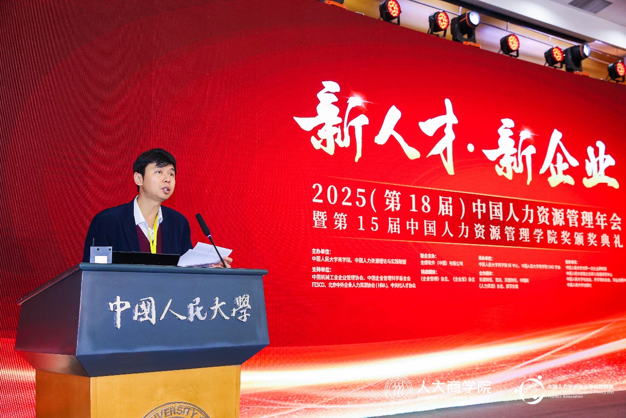 11月21日,以“新人才·新企业”为主题的2025(第18届)中国人力资源管理年会暨第15届中国人力资源管理学院奖颁奖典礼在中国人民大学举办。本届年会由中国人民大学商学院、中国人力资源理论与实践联盟主办,金蝶软件(中国)有限公司联合主办,包括十场主题演讲与一场圆桌对话,并颁发“2025中国人力资源管理最佳实践奖”。中国人民大学商学院院长易靖韬出席并致辞。中国人民大学商学院组织与人力资源系助理教授郎婷婷、李竹伊共同主持。