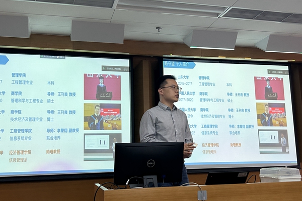 宣讲会也邀请到三位优秀的应届博士毕业生分享学习心得,分别是管理科学与工程系博士毕业生路守望(就职北京交通大学),企业管理系博士毕业生杨雨东(就职北京工商大学),会计系博士毕业生赵越(继续就读人大商学院-新加坡管理大学会计学院双博士学位项目)。