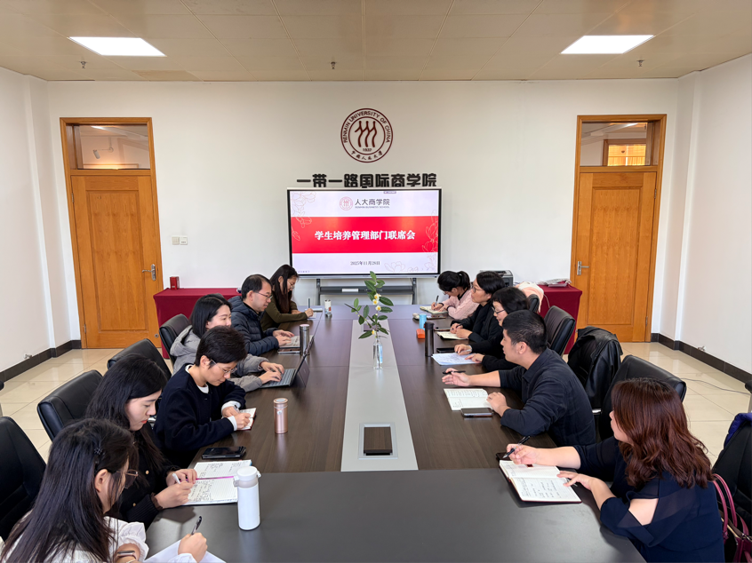 商学院学生培养管理部门联席会在“一带一路”国际商学院召开。党团学办公室、教务办公室、职业发展中心、MBA项目中心负责老师围绕学生日常管理、教学培养、实践育人等开展研讨。大家纷纷表示,要面向国家“十五五”规划,依托学校多校区战略,打通“招培就”链条,进一步提升人才培养质量,助力学生高质量充分就业。