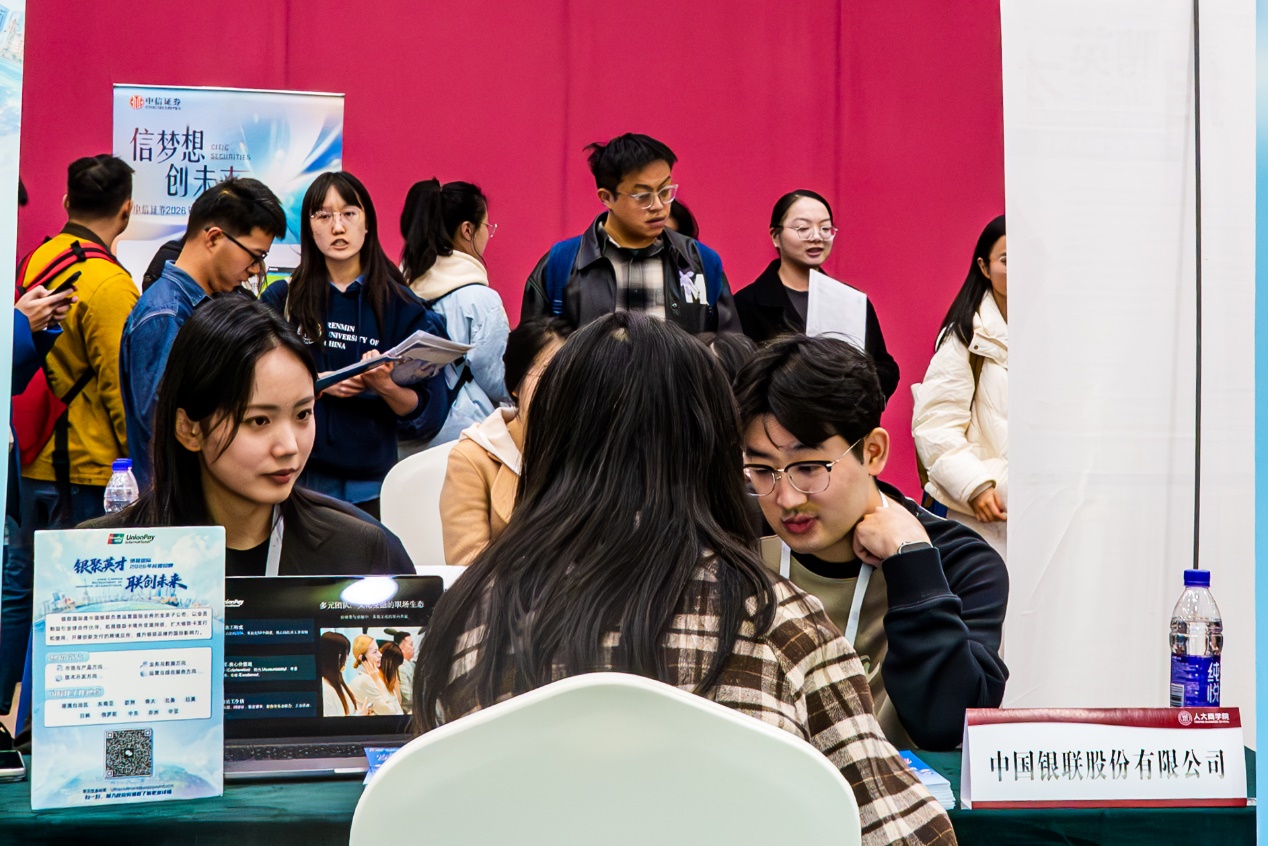 11月12日,由中国人民大学学生就业创业指导中心和商学院联合举办的中国人民大学商学院专场招聘会(2025秋季)在世纪馆举办。