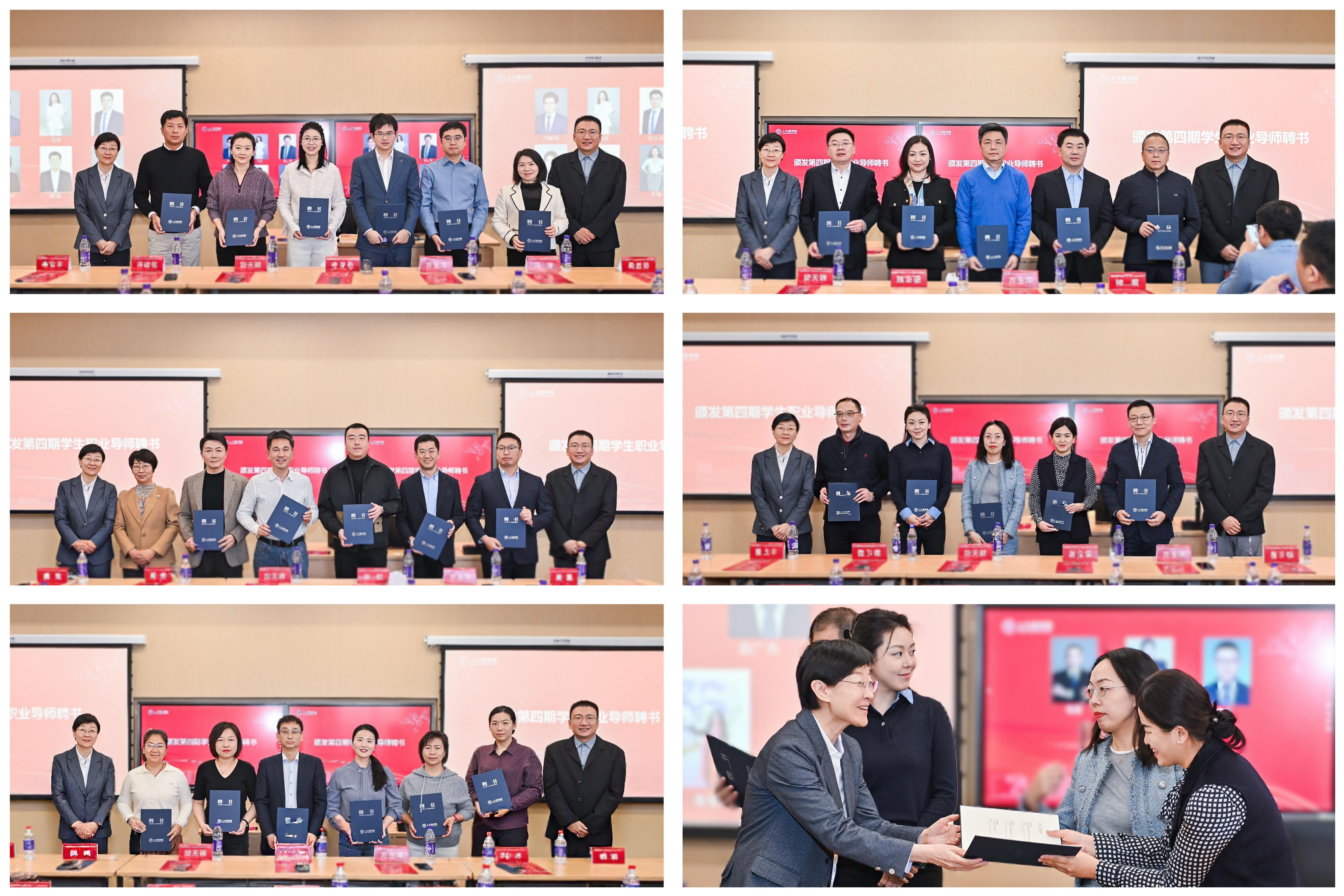 12月6日,“培养联动,促进高质量就业”——商学院学生职业导师、校友志愿者聘任仪式暨学生就业工作研讨会在中国人民大学通州校区商学楼举行。商学院党委书记旋天颖,中国人民大学招生就业处副处长张皓,商学院党委副书记、纪委书记方玉萍出席,第四期学生职业导师、第二期青年校友智引志愿者代表及学院师生代表参加会议。职业发展中心与校友办公室主任黄微主持。